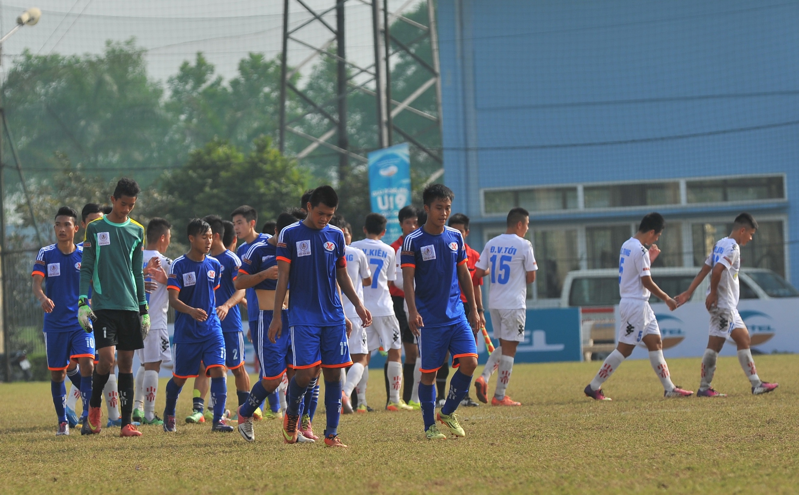 | Những phút cuối trận U19 Than Quảng Ninh chỉ chơi với 10 người những vẫn thể hiện được tinh thần máu lửa. Các cầu thủ trẻ đất mỏ rất nỗ lực nhưng không thể có bàn thắng rút ngắn tỷ số. |