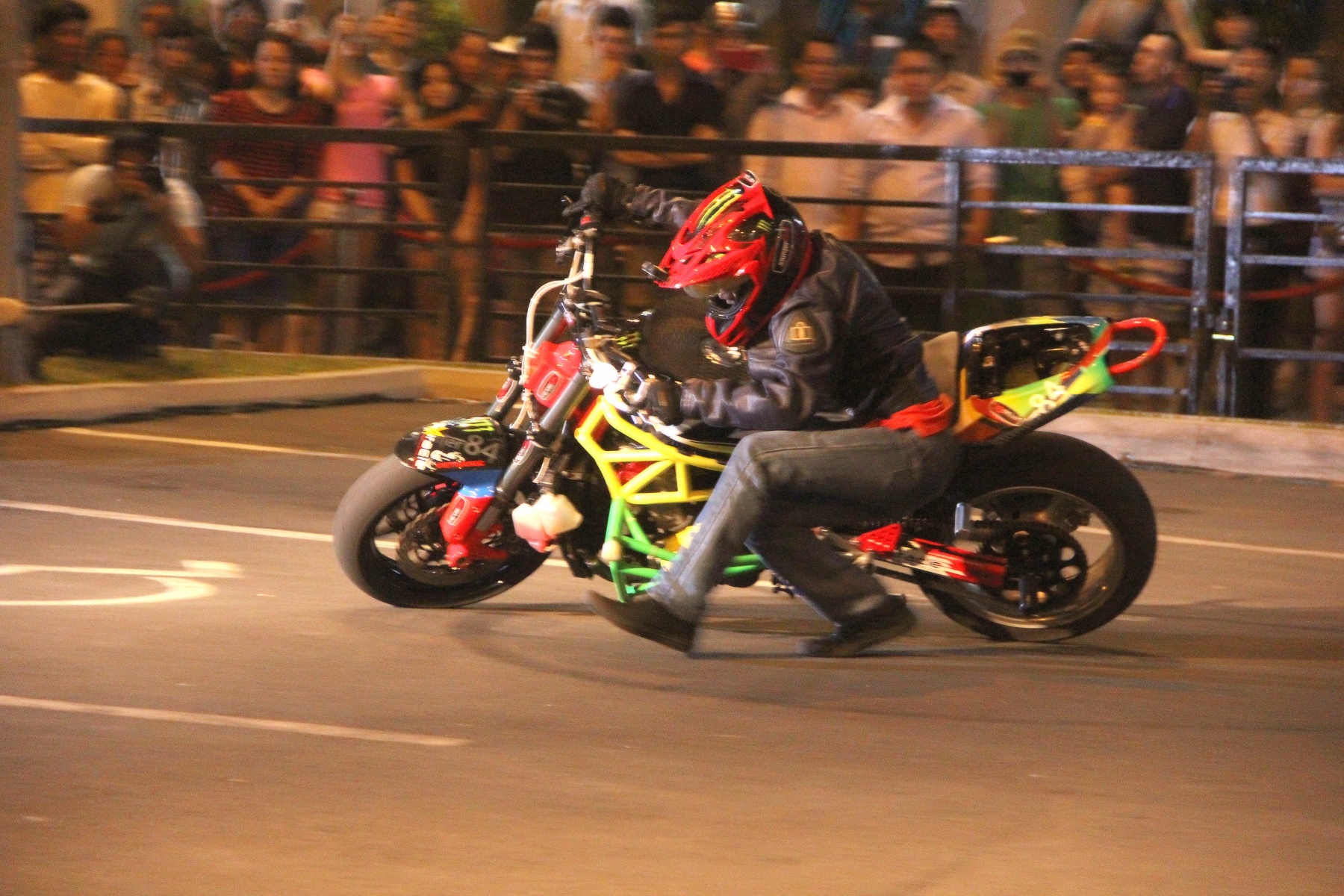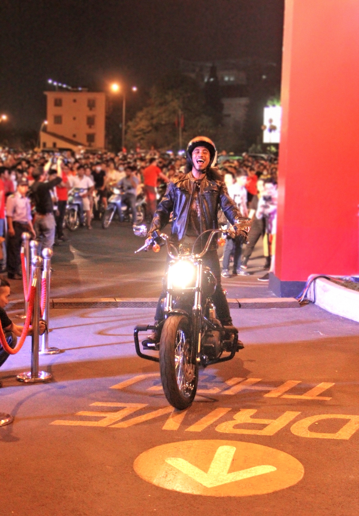 | Phần biểu diễn kỹ thuật mạo hiểm của đoàn môtô và xe đạp mang đến những trải nghiệm lý thú cho người xem. Ngày 24/3, sự kiện imlovinit Drive-Thru tiếp tục diễn ra với nhiều hoạt động khác như cơn mưa quà tặng ở các khung giờ 11h30-13h30 và 18h-18h35. Đặc biệt, Hari Won, nữ ca sĩ gốc Hàn được mến mộ trong nhiều game show thực tế, sẽ xuất hiện và giao lưu với khán giả vào lúc 18h30-19h30. |