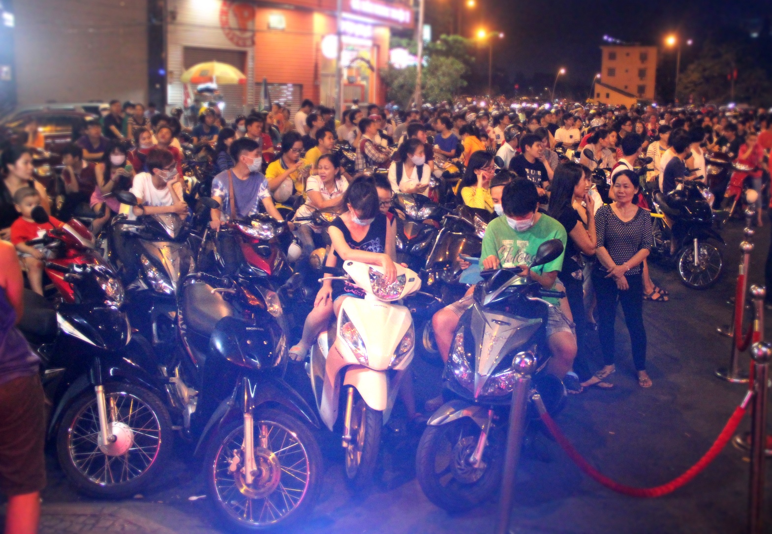 | Hàng trăm người dân đã tập trung trước nhà hàng McDonald's, Điện Biên Phủ từ sớm. Họ hào hứng chờ đến lượt mình di chuyển vào con đường dịch vụ, nói từ khoá “imlovinit” để nhận quà tặng là phần ăn miễn phí gồm một bánh burger, một phần khoai chiên French Fries và một lon Coca-Cola. |