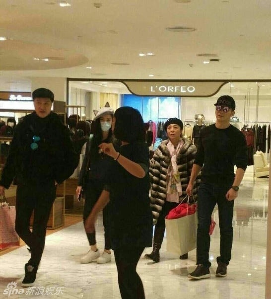 | Lý Thần, Phạm Băng Băng đi mua sắm cùng bố mẹ nữ diễn viên trước đêm Giao thừa. Nữ diễn viên đeo khẩu trang tránh sự chú ý của truyền thông. Ảnh: Sina. |