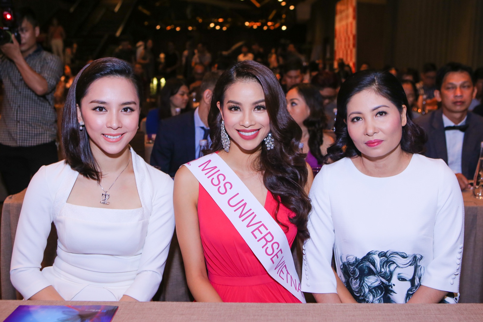 | Xuất hiện ở buổi gặp gỡ còn có mẹ đương kim Hoa hậu Hoàn vũ. Thời gian này, bà ở Sài Gòn phụ con gái chuẩn bị hành trang tham gia đấu trường nhan sắc quốc tế. Phạm Hương được khen thừa hưởng nhiều nét đẹp sắc sảo từ mẹ. Chưa quen với không khí buổi giao lưu nên bà tỏ ra khá căng thẳng. |