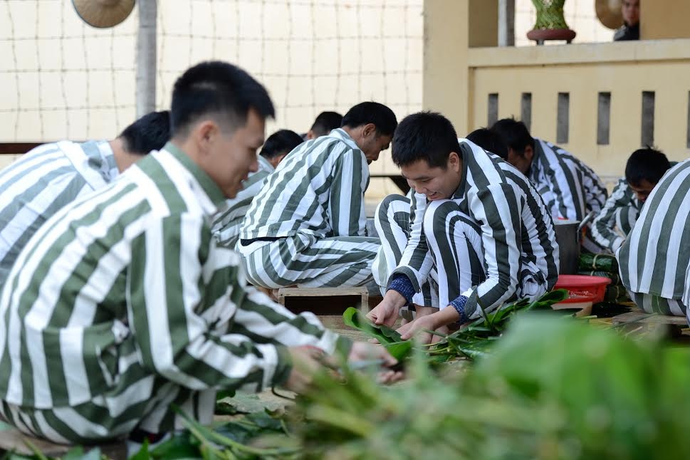 Bốn ngày trước Tết Bính Thân, phạm nhân Vũ Văn Vinh (21 tuổi, ở huyện Vân Đồn, Quảng Ninh) cùng hàng chục phạm nhân khác tất bật với các công đoạn để chuẩn bị gói cả nghìn chiếc bánh chưng phục vụ cho những người mắc phải lầm lỗi. Không khí xuân đã rộn rã khắp nơi đây.