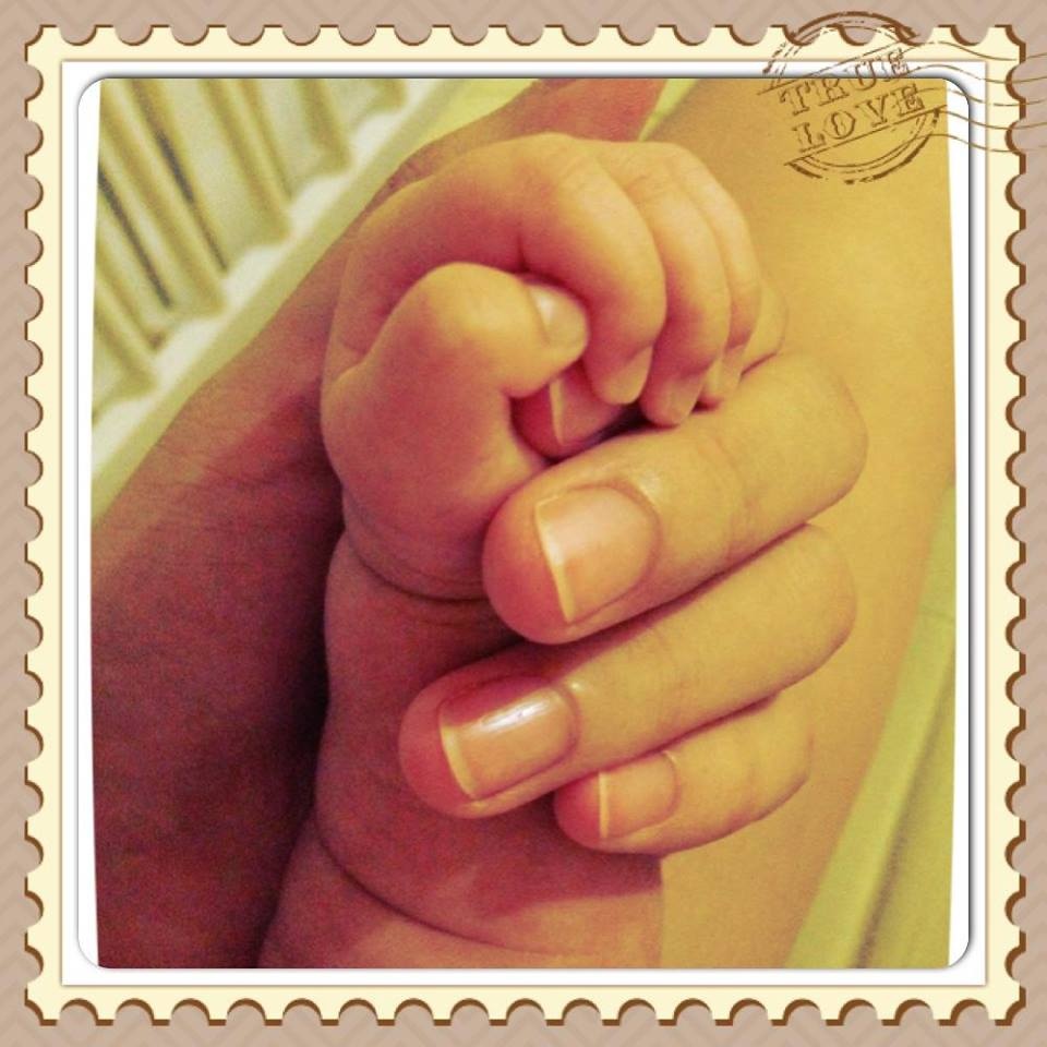 | Hương Giang hạnh phúc khoe ảnh nắm tay con không lâu sau khi Tiểu Panda chào đời. |