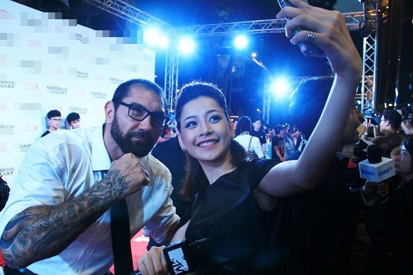 | Và mới đây nhất, 9X đã có trải nghiệm mới khi tham gia sự kiện quốc tế với vai trò VJ. Trong chuyến đi này hot girl đã gặp gỡ và trò chuyện với các diễn viên tên tuổi của thế giới như Zoe Saldana, Dave Bautista và đạo diễn James Gunn. Ảnh: Vietgiaitri. |