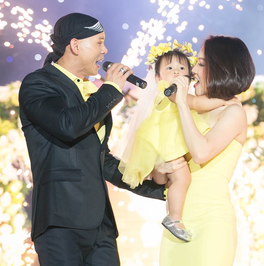 | Đây là lần đầu tiên Phan Đinh Tùng và Ngọc Bích khoe con gái yêu trên sân khấu với khán giả. Trước đó, chuyện bà xã mang bầu, sinh con đều được anh giấu nhẹm. Tận đến khi con gái được 8 tháng tuổi, mọi người mới hay anh đã lên chức bố. |