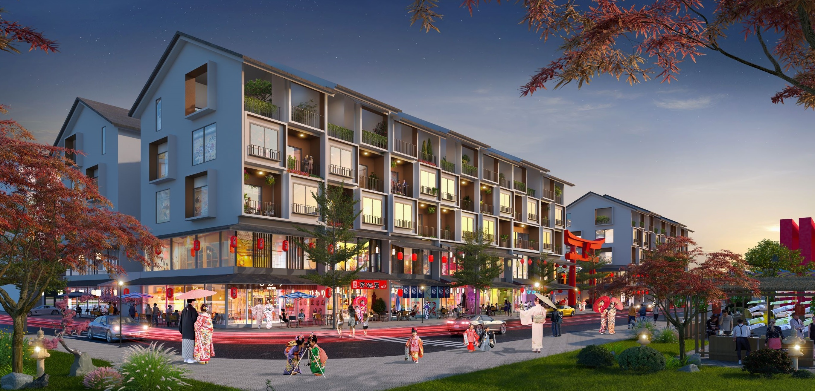 Du khách có thể chọn các dãy phố thương mại Koto để lưu trú và nghỉ dưỡng, thưởng thức phong vị Nhật Bản trong từng đường nét kiến trúc, cũng như những sự kiện văn hóa sẽ được tổ chức trong tương lai.