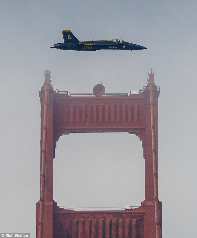 Đội bay "Những thiên thần màu xanh" của Mỹ đã cử những chiếc phản lực chiến đấu F/A-18 Hornet, chuyên trách trên tàu sân bay, tới tập luyện ở vịnh San Francisco để chuẩn bị cho sự kiện Tuần Hạm đội San Francisco 2014. Một trong những nội dung đặc sắc nhất của bài tập là di chuyển tốc độ nhanh qua cầu Cổng Vàng, cây cầu treo lịch sử của nước Mỹ ở cửa ngõ vịnh San Francisco, bang California.