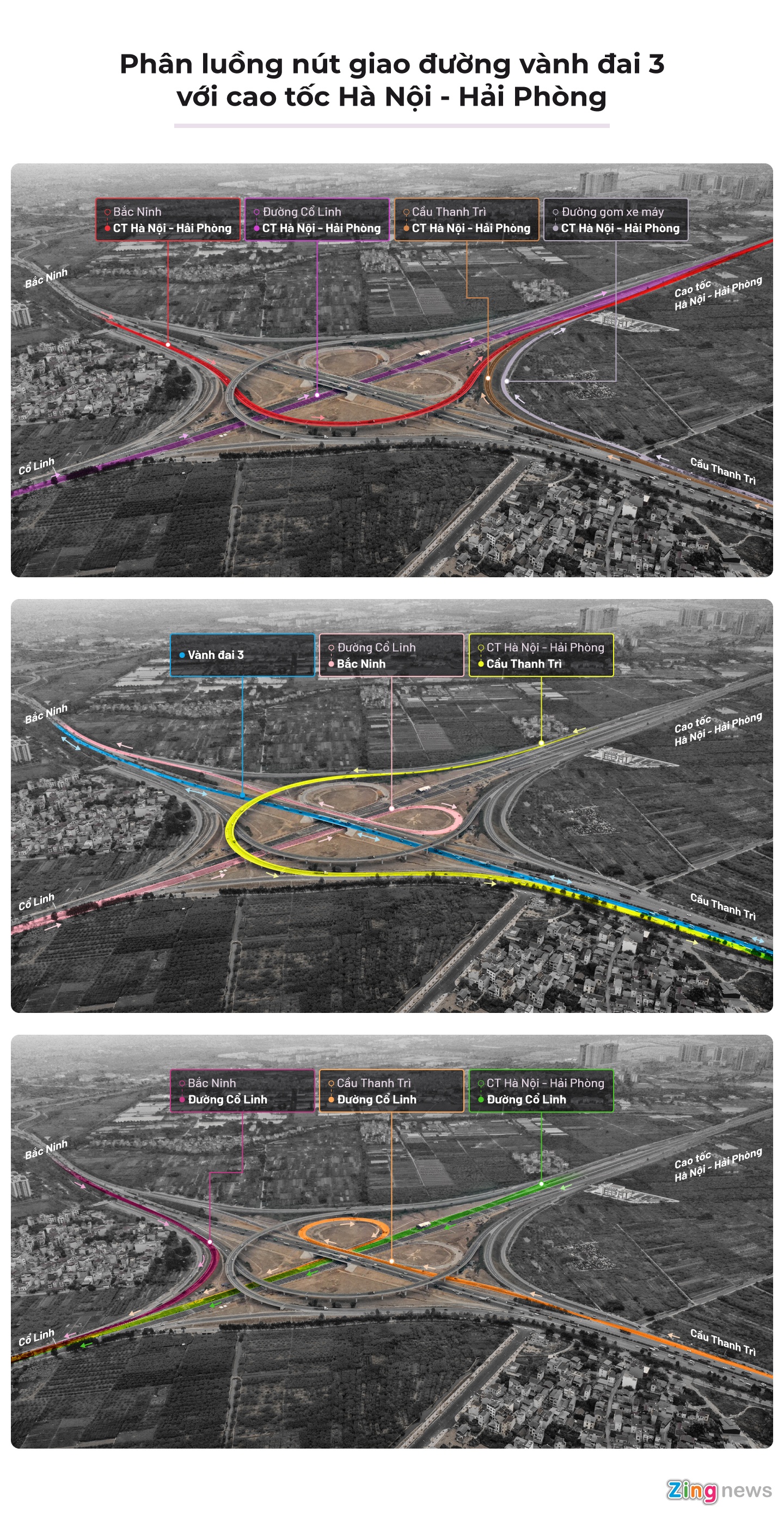 Sau lễ khánh thành vào sáng 9/1, các phương tiện có thể lưu thông qua nút giao đường Vành đai 3 với cao tốc Hà Nội - Hải Phòng.