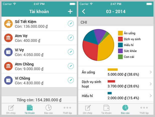 - Ghi chép các khoản thu chi hàng ngày của cá nhân/gia đình.