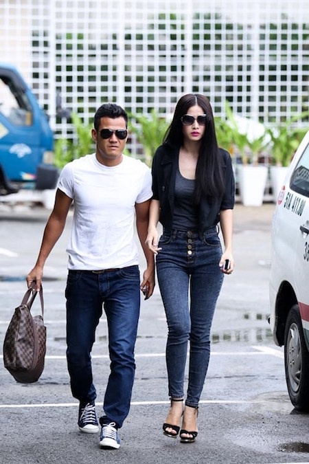 | Phan Thanh Bình hộ tống vợ đi thi Vietnam's Next Top Model 2013. |