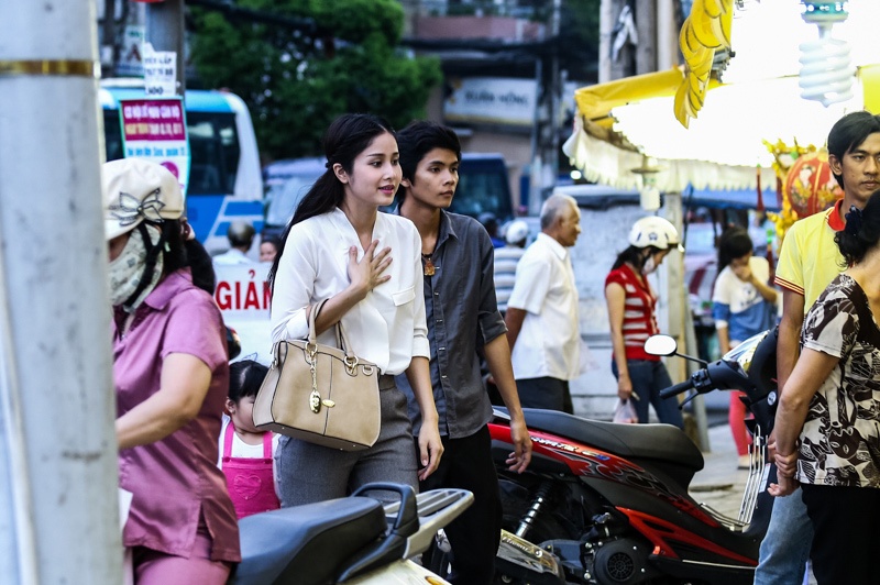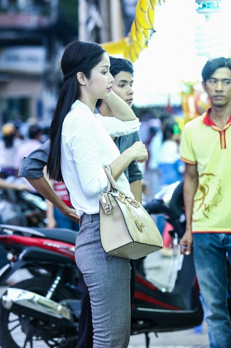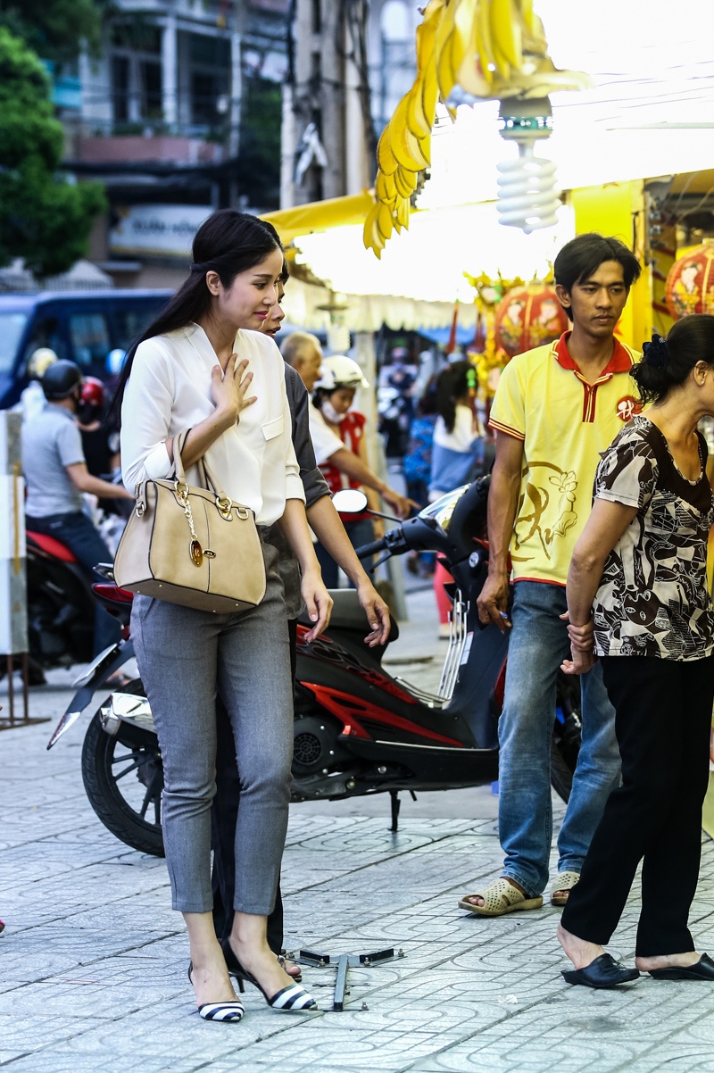 Vợ chồng Phan Thanh Bình gây chú ý trên phố. Cặp đôi ăn mặc giản dị, trẻ trung.