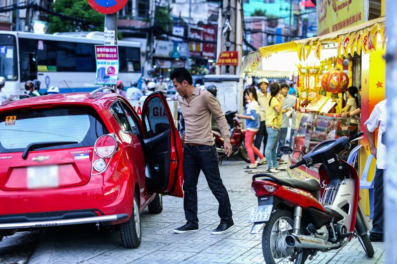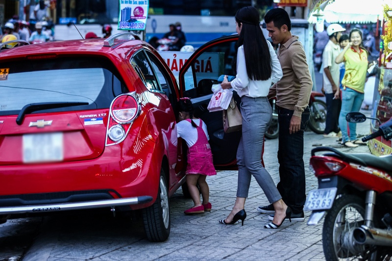 | Sau khi mua sắm, cả nhà lên xe về. |