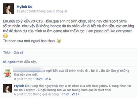 Tuy nhiên, status bức xúc của Mỹ Linh về việc bình chọn đã bị xóa sau đó không lâu.