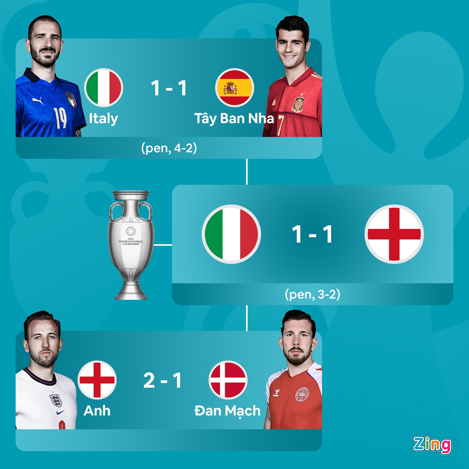 Tuyển Anh mở tỷ số sớm nhưng lại không thể duy trì lợi thế. Họ bị Italy gỡ hòa ở hiệp hai, sau đó gục ngã trước đối thủ ở loạt luân lưu cân não. Rashford, Sancho và Saka là 3 cầu thủ nhận nhiều chỉ trích vì những pha đá hỏng.