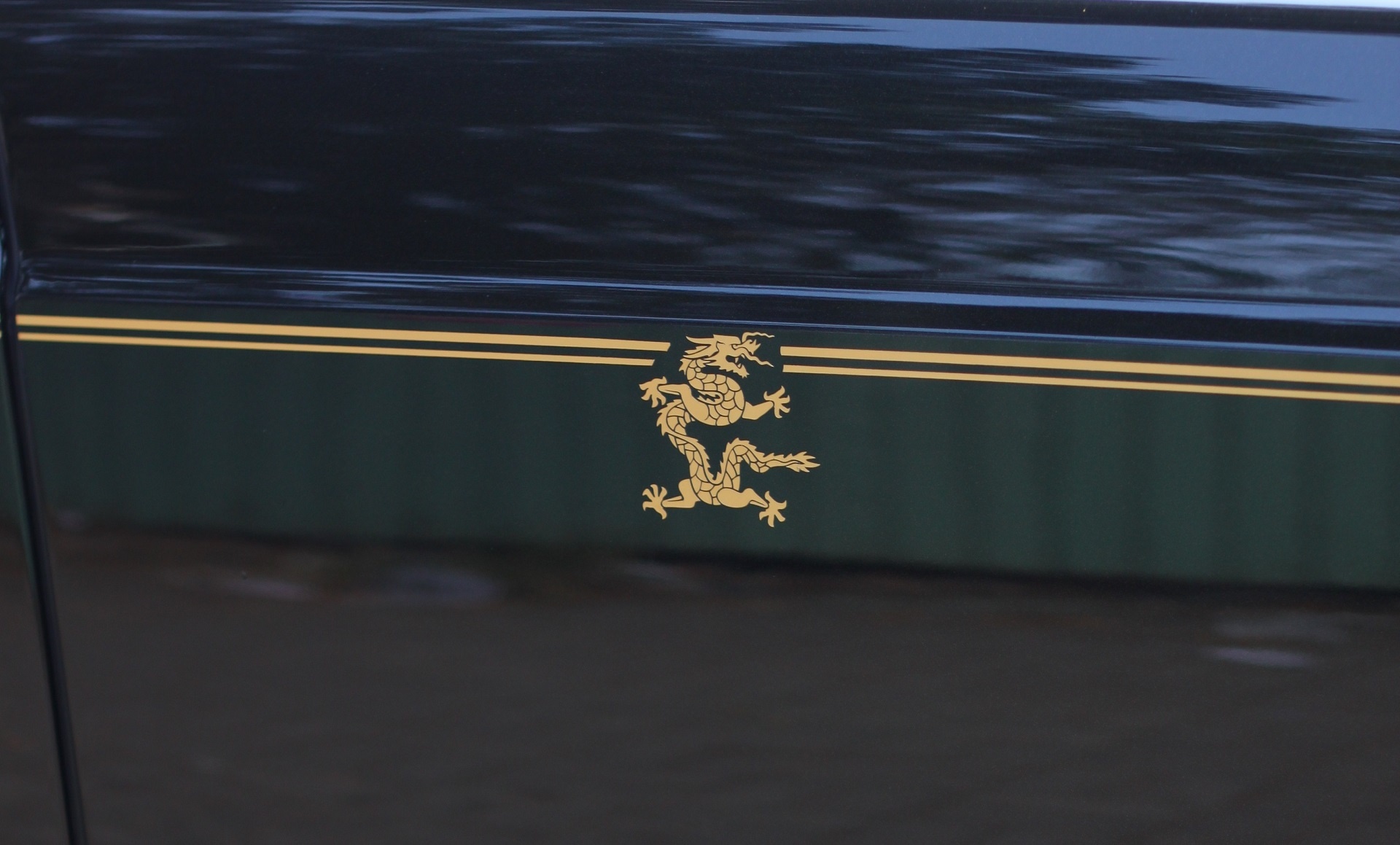 | So với những phiên bản tiêu chuẩn, Phantom phiên bản rồng rất dễ nhận biết nhờ đường kẻ vàng chạy dọc thân xe, kèm theo đó là biểu tượng con rồng gắn giữa đường kẻ này. |