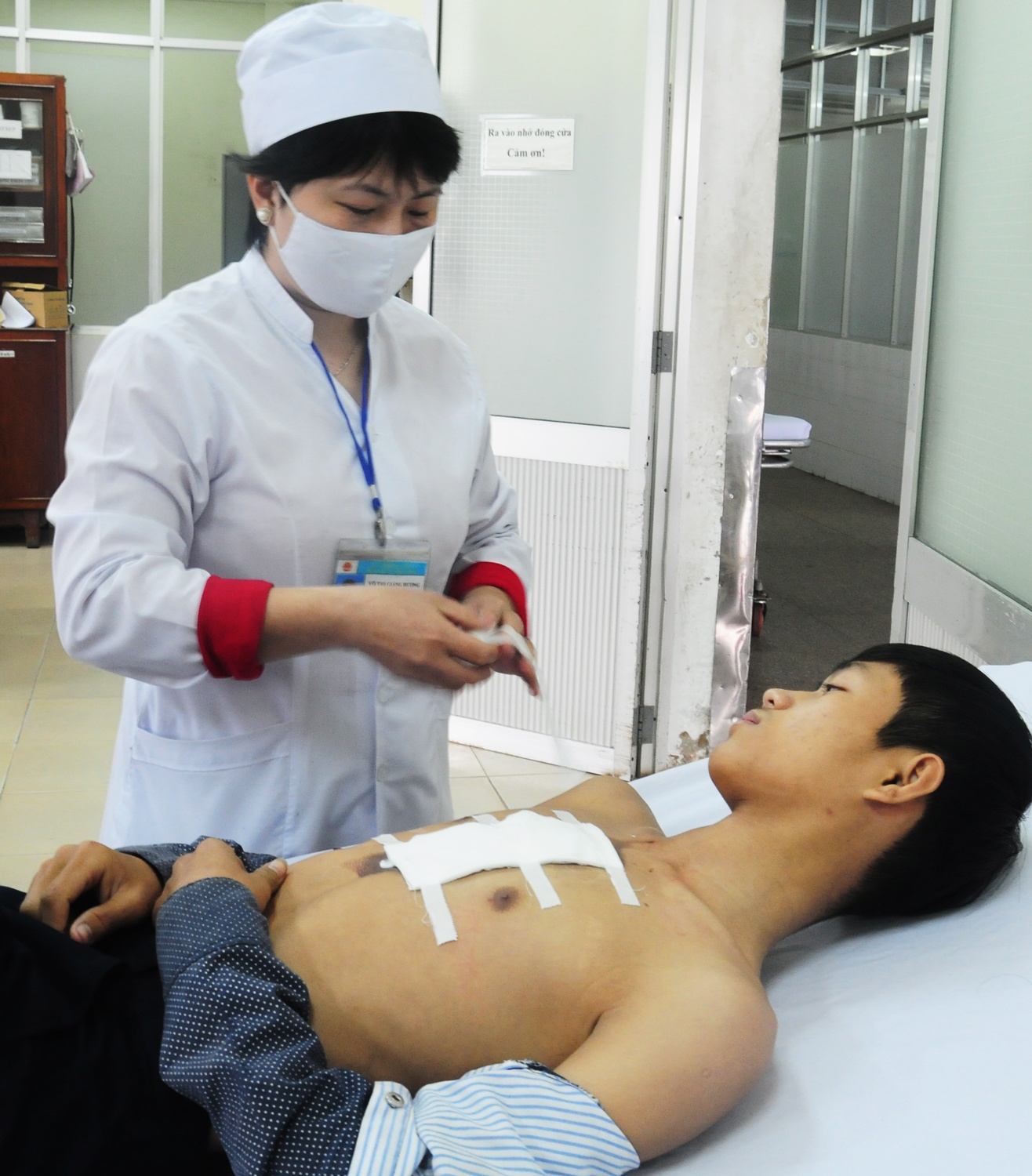 Trong số này, ba trường hợp chấn thương mắt. Riêng anh Nguyễn Minh Tú (25 tuổi phường Trương Quang Trọng, TP Quảng Ngãi) bị bỏng vùng ngực, cổ 10%. Vương Đình Tâm (16 tuổi, ngụ huyện Tư Nghĩa) bị bỏng vùng ngực, bụng 7% do pháo hoa rơi trúng.