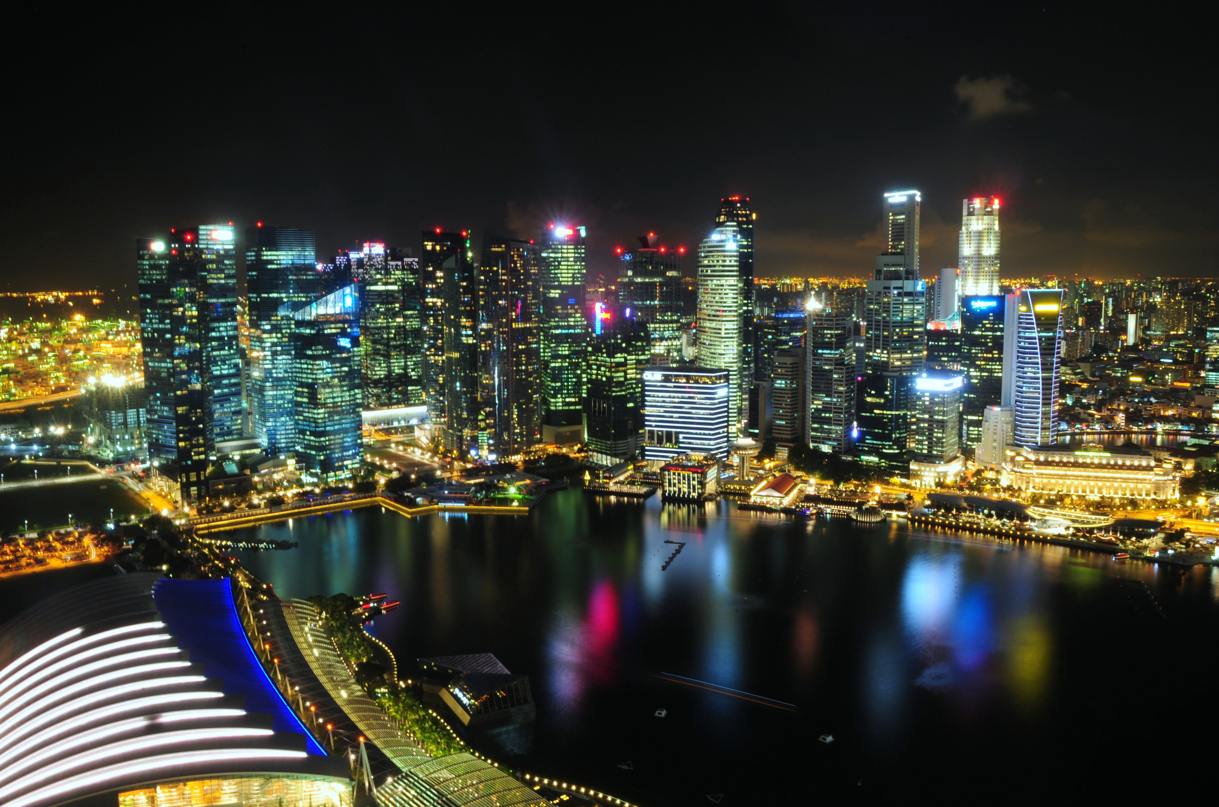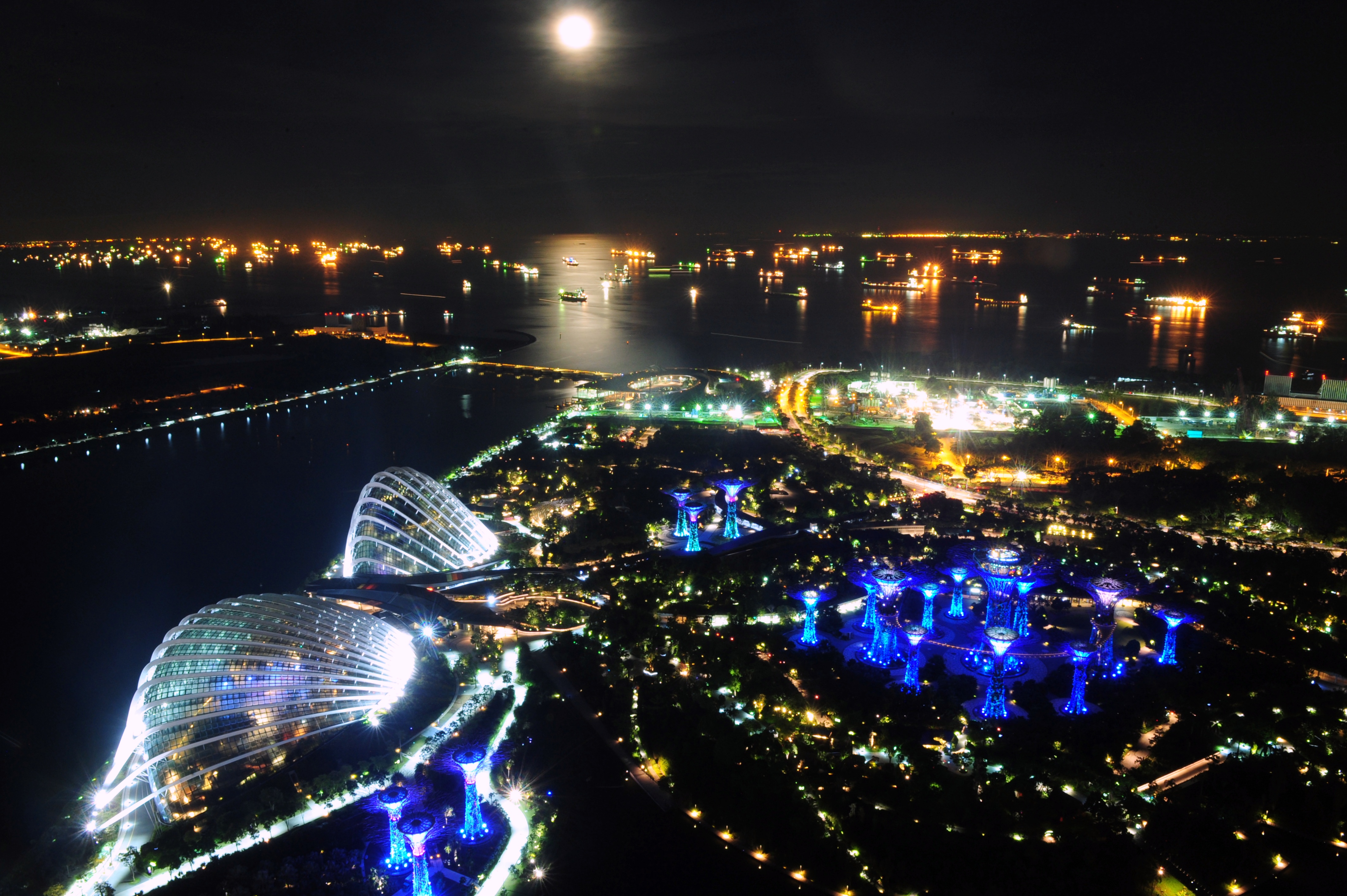 Singapore đã đem đến sự ấn tượng về sự kết hợp giữa ánh sáng, màu sắc và kỹ xảo. Quang cảnh thành phố với ánh sáng hiện đại trước lễ khai mạc SEA Games 28 tối 5/6.