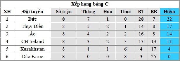 Dù giành chiến thắng cách biệt, tuyển Đức vẫn chưa thể giành vé tới Brazil. Muốn đi tiếp, thầy trò HLV Joachim Loew cần phải đánh bại CH Ireland ở lượt đấu thứ 9, hoặc giành một điểm từ tay đối thủ này cũng như một điểm từ tay Thụy Điển ở lượt trận cuối cùng tại bảng C.