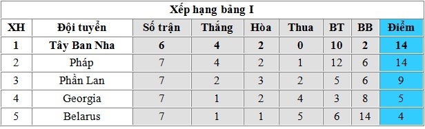 Thắng chung cuộc 4-2, Pháp quân bình khoảng cách về điểm số (14) với Tây Ban Nha ở bảng I. Tuy nhiên, Les Blues vẫn xếp sau do kém chỉ số phụ, đồng thời thi đấu nhiều hơn một trận. Trong khi đó, Belarus chính thức nói lời chia tay World Cup khi đứng bét bảng với 4 điểm sau 7 lượt trận.