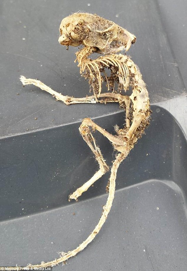 Chuyên gia Stuart Hine, phụ trách công tác nhận dạng và cố vấn thuộc Bảo tàng lịch sử tự nhiên, cho biết, căn cứ kích thước, đây có thể là một bộ xương chuột. Tuy nhiên, nó cũng mang hình dáng của một sinh vật lạ khi hộp sọ lộn người về phía sau, thiếu chi trước và xương bả vai. Tổ kén bao bọc xung quanh cấu tạo từ da, lông của con vật và tơ của các loài sâu bướm. Đuôi của sinh vật này vẫn nằm trong lớp da nên có thể nó chỉ hình thành cách đây khoảng một hoặc hai năm.
