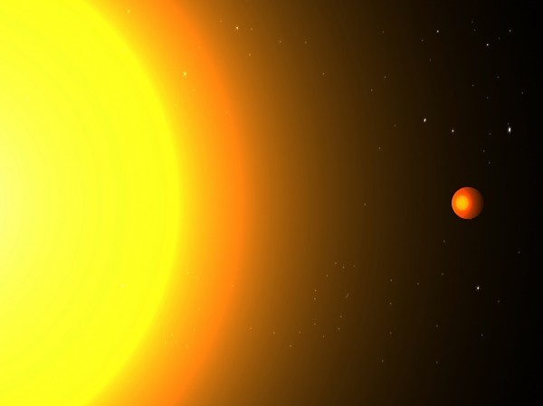| Hình minh họa hành tinh Kepler b (khối cầu nhỏ bên phải). Ảnh: MIT. |