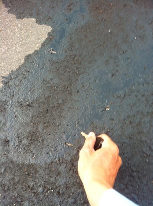 Ông Hải cho hay, khi hóa chất này đổ lên đường lập tức bốc khói trắng và có vệt thấm dưới nền... Cho đến ngày 15/7, vị trí mặt đường bị đổ hóa chất này đã bị mủn với chiều sâu 1 cm.