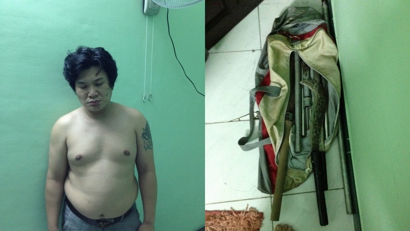 Trước đó, vào lúc 2h sáng 12/10 trinh sát đội 2 phối hợp cùng trinh sát hình sự công an Q.Phú Nhuận và công an P.11 bất ngờ tiến hành kiểm tra ngôi nhà số 216F đường Nguyễn Đình Chính (P.11, Q.Phú Nhuận, đối diện trụ sở công an P.11). Tại đây, công an phát hiện 1 túi xách du lịch bên trong có chứa 18 tuýp sắt (dài 1m), 10 dao bầu cán dài, 3 chiếc rựa, 4 mã tấu tự chế, 30 bộ dụng cụ sử dụng ma túy đá, 1 khẩu súng ru lô tự chế, 23 viên đạn chì, 4 viên đạn hoa cải, 1 máy tính xách tay có nhiều phim ảnh đồi trụy, 1 dao lê…