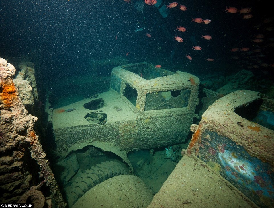 Nhiều xe tải, xe bọc thép, súng, đạn dược vẫn nguyên vẹn suốt hơn 70 năm chìm dưới lòng Biển Đỏ.