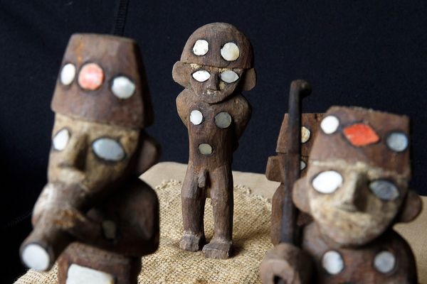 Những bức tượng gỗ cho thấy cảnh các chiến binh tộc Chimu đang áp giải một tù binh trong bảo tàng Huaca de La Luna tại thành phố Trujillo, Peru. Người Chimu thường tước vũ khí và trang phục của các tù nhân trước khi giết họ để hiến tế, Isbell, làm việc tại đại học Binghamton, cho biết.