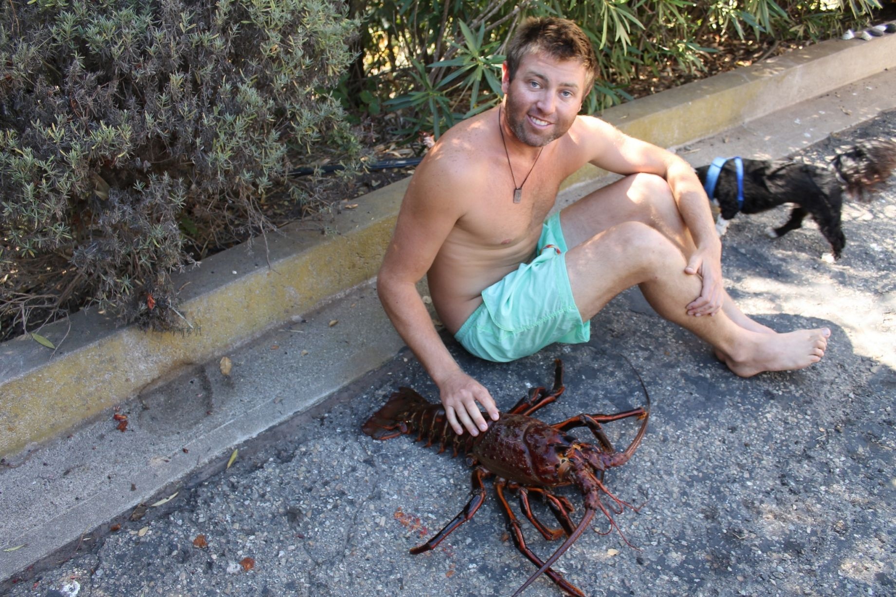 | Forrest đang chơi với con tôm trước hiên nhà ở Santa Barbara. Ảnh: Mirror |