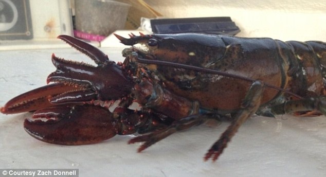 Một con tôm hùm có 6 chiếc nanh sắc nhọn trên cùng một càng giống như bàn tay vừa được tìm thấy ở ngoài khơi bang Massachusetts, Mỹ.