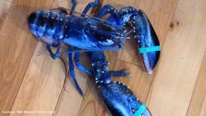 Các chuyên gia cho biết, vỏ tôm hùm màu xanh bắt nguồn từ khiếm khuyết di truyền. Màu sắc sặc sỡ khiến những cá thể này dễ bị kẻ thù phát hiện trong môi trường tự nhiên. Phần lớn những cá thể đột biến đều bị giết trước trưởng thành. |