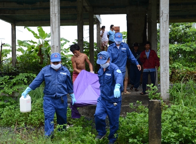 | Lực lượng chức năng đưa thi thể nạn nhân về nhà xác Bình Hưng Hòa. |