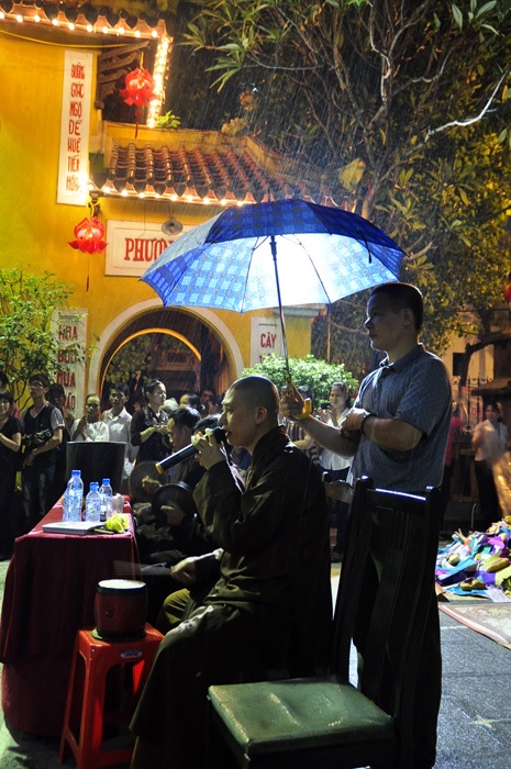 Tối 19/8, cơn mưa bất chợt khiến hàng nghìn phật tử dự buổi lễ Vu Lan được tổ chức sớm tại chùa Quán Sứ phải dầm mình khoảng hơn 1 giờ đồng hồ.