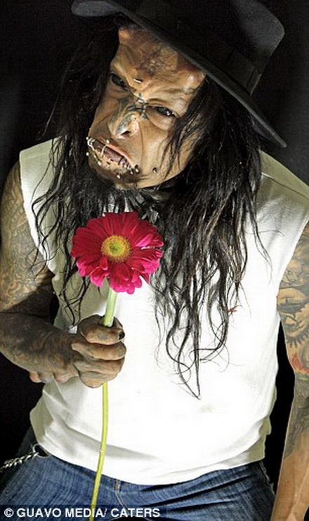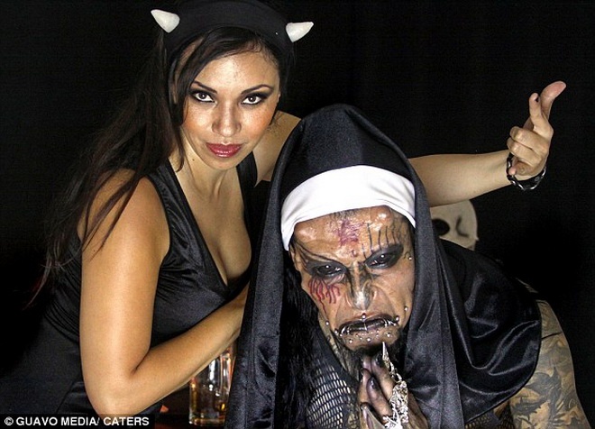 | Theo Daily Mail, Mortis đã trải qua 11 ca phẫu thuật, chỉnh hình, cấy ghép để có bộ dạng khác người. |