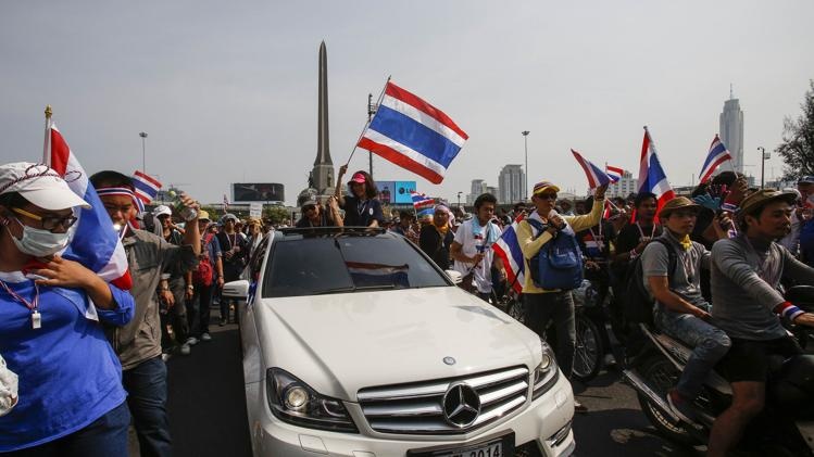 Ngay lập tức Suthep kêu gọi người biểu tình tiếp tục gây sức ép với chính phủ trong ba ngày nữa. "Nếu sau ba ngày mà việc này không kết thúc, gia tộc Shinawatra sẽ không cảm thấy hạnh phúc trong cuộc đời nữa", Suthep tuyên bố. Ảnh: Reuters