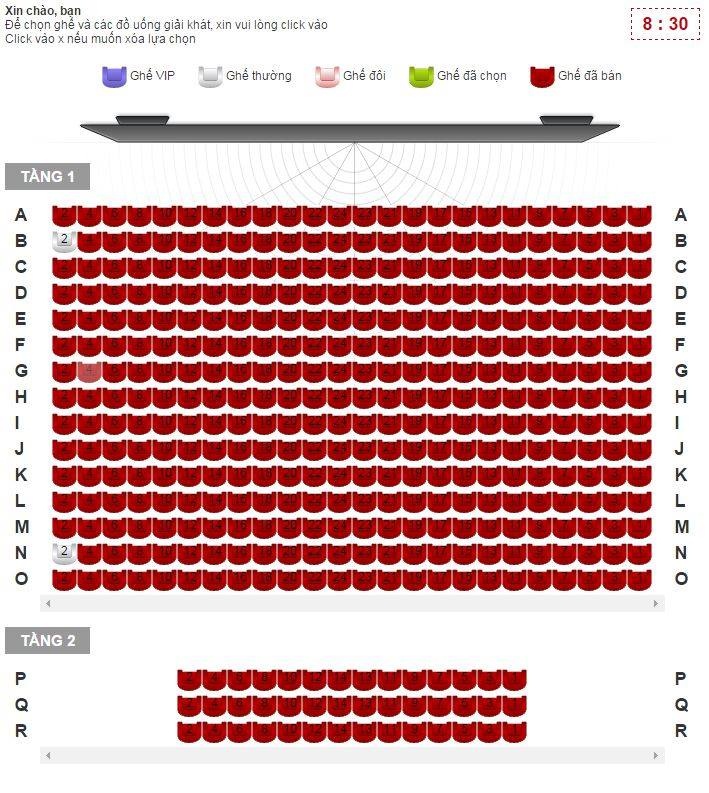 | Lịch chiếu phim Mỹ Nhân Ngư suất 18h chỉ còn 2 ghế trống. |
