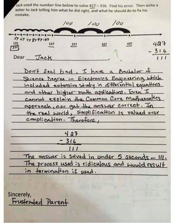Cuối cùng, vị phụ huynh đành phải giải phép tính theo cách của mình và cũng là cách mà nhiều người được dạy.