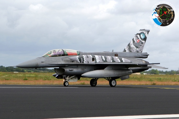 Chiến đấu cơ F-16 phiên bản cải tiến Block 52+ của Ba Lan với hình mắt hổ xám.