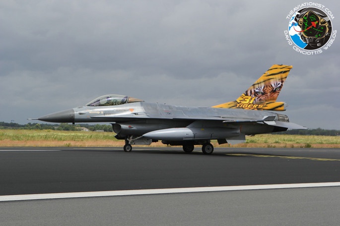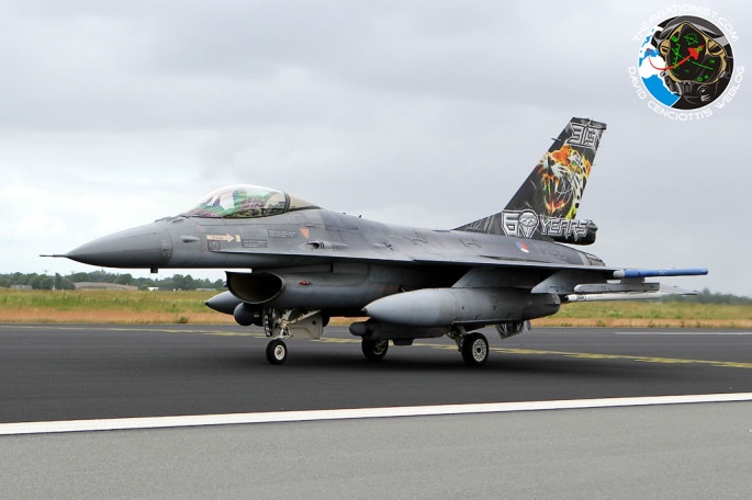 Máy bay F-16 với hình mãnh thú đang gào thét của không quân Hà Lan.