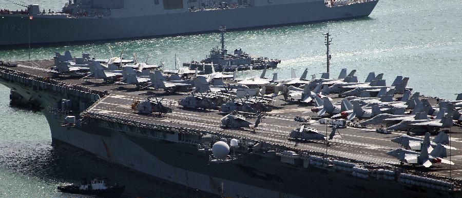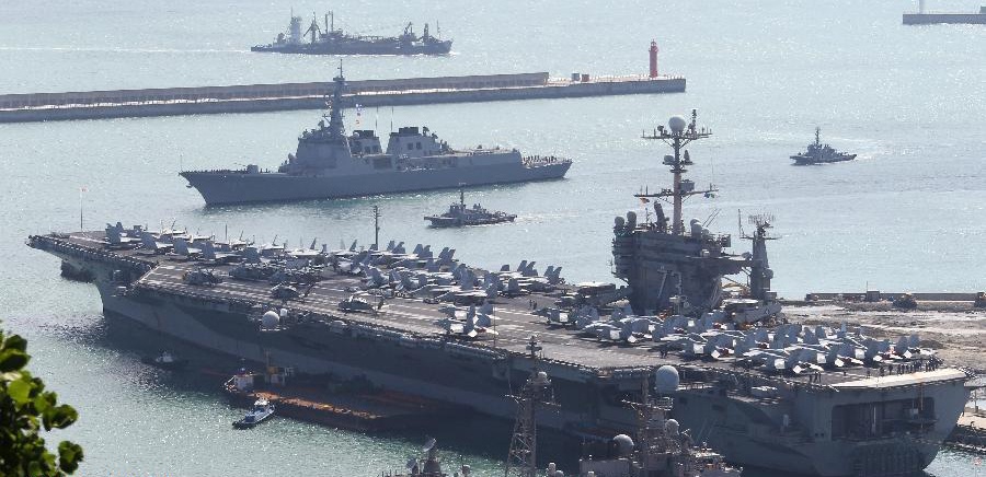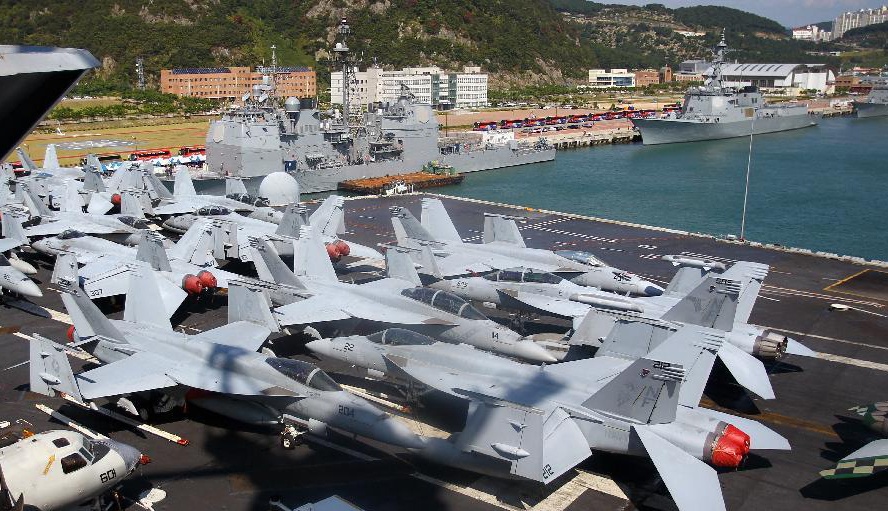 Nhóm tàu tấn công của hàng không mẫu hạm USS George Washington, thuộc biên chế Hạm đội 7, hải quân Mỹ có mặt tại Hàn Quốc 4 ngày trước khi diễn ra cuộc tập trận chung trên biển giữa Mỹ, Hàn Quốc và Nhật Bản trên vùng biển phía Nam bán đảo Triều Tiên. Cuộc tập trận bắt đầu ngày 8/10 và kéo dài trong 3 ngày. |