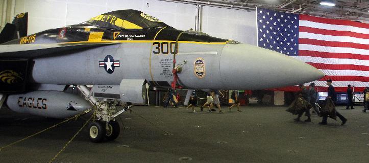 Khi tiến vào thành phố cảng Bursan, phần lớn máy bay chiến đấu của USS George Washington đều được đưa hết lên trên boong. USS George Washington tới Hàn Quốc với 70 máy bay chiến đấu, trực thăng chống ngầm và máy bay cảnh báo sớm. |