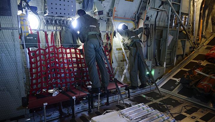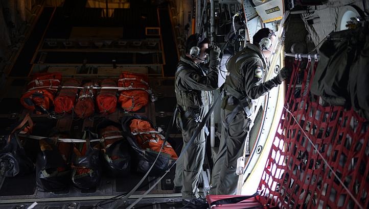 Thành viên phi hành đoàn của chiếc C-130 quan sát mặt biển nhằm phát hiện vật thể lạ ở vùng biển nằm cách Kelantan bang của Malaysia 140 hải lý về phía đông bắc. Chiếc máy bay cứu nạn mang theo 10 thuyền phao cứu sinh màu vàng ở phần đuôi. Người ta sẽ thả chúng xuống biển nếu thấy người sống sót đang trôi nổi trên mặt nước.