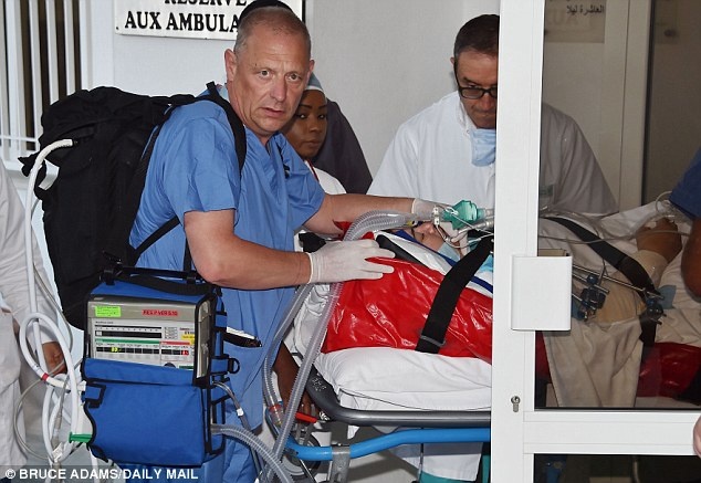 Xe cứu thương đưa những du khách trúng đạn người Anh tới phi trường. Những chiếc C-17 được thiết kế để mang lượng lớn hàng hóa hoặc cáng cứu thương, cho phép nó đảm trách nhiệm vụ vận tải thương binh từ vùng chiến sự. Ảnh: Getty |