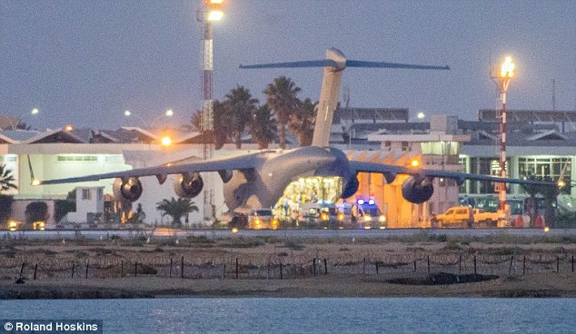 Sau 3 ngày điều trị tại nước sở tại, du khách người Anh đã được đưa lên máy bay vận tải quân sự về quê hương. Chiếc C-17 đáp xuống sân bay Monastir, Tunisia để làm nhiệm vụ. Ảnh: Getty |