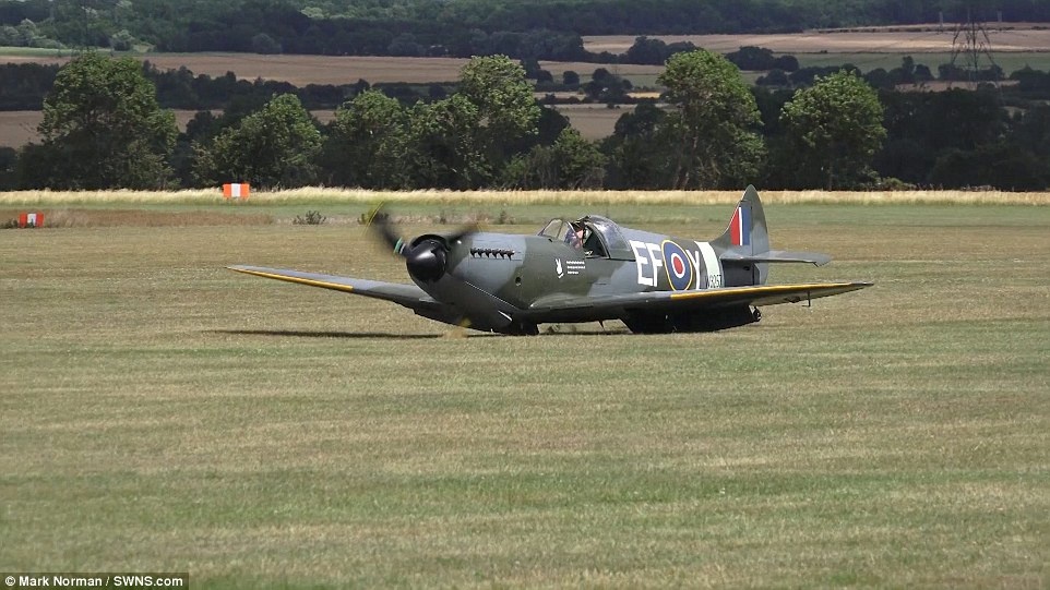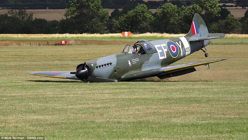 Dù bánh xe hỏng, phi công vẫn điều khiển chiến đấu cơ Spitfire của Anh hạ cánh mà không gây thiệt hại.