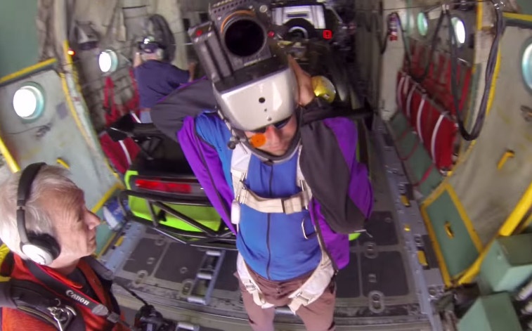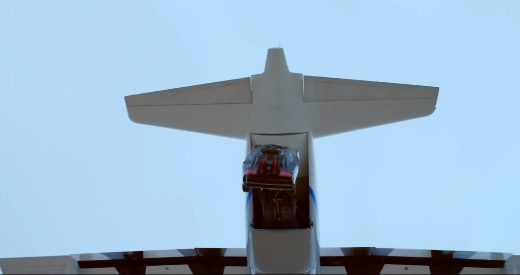 Các nhà làm phim đã thả 5 ôtô từ độ cao 3.700 m. Họ sử dụng nhiều máy quay để ghi lại khoảnh khắc những chiếc xe rời máy bay. |