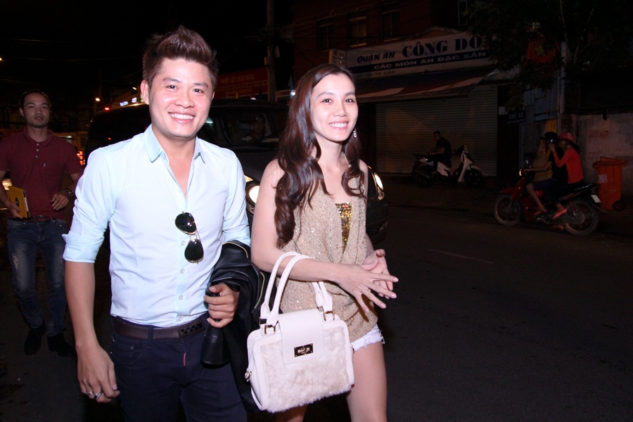 | Phi Thanh Vân và bạn trai sánh bước đi tiệc. Nữ diễn viên đang mang bầu những tháng đầu tiên và người tình trẻ ăn mặc khá xuề xoà và không ăn nhập khi xuất hiện cùng nhau. |