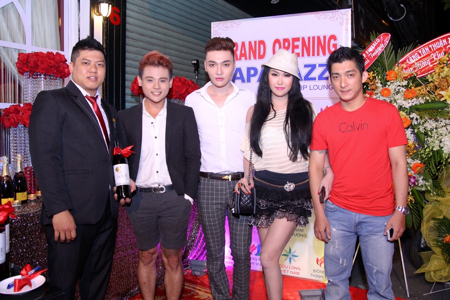 | Phi Thanh Vân còn đưa các hot boy vốn là học trò của mình (thứ hai và thứ ba từ trái vào) tháp tùng cùng mình. |