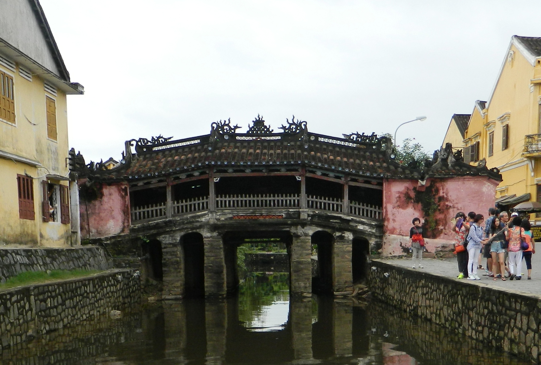 | Chùa Cầu là cây cầu cổ trong khu phố cổ Hội An (Quảng Nam). Cầu còn có tên gọi là Cầu Nhật Bản hay Lai Viễn Kiều. Chiếc cầu này được các thương nhân người Nhật góp tiền xây dựng vào khoảng thế kỷ 17, nên còn có tên Cầu Nhật Bản, dù kiến trúc đậm nét Việt Nam. Theo truyền thuyết, cây cầu được coi như là một thanh kiếm đâm xuống con quái vật Namazu, khiến nó không quẫy đuôi, gây ra những trận động đất. Năm 1653, người ta dựng thêm phần chùa, nối liền vào lan can phía bắc, nhô ra giữa phần cầu. Từ đó người địa phương gọi là Chùa Cầu. Ảnh: Hà Nam. |